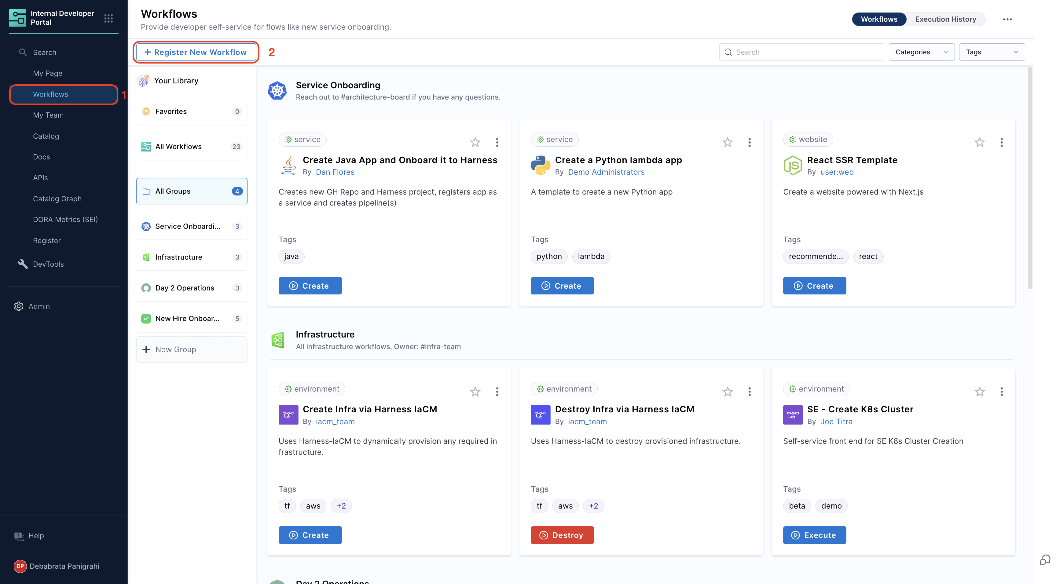 This guide will walk you through the process of registering and managing your Workflows directly from Harness IDP. Let's dive in!