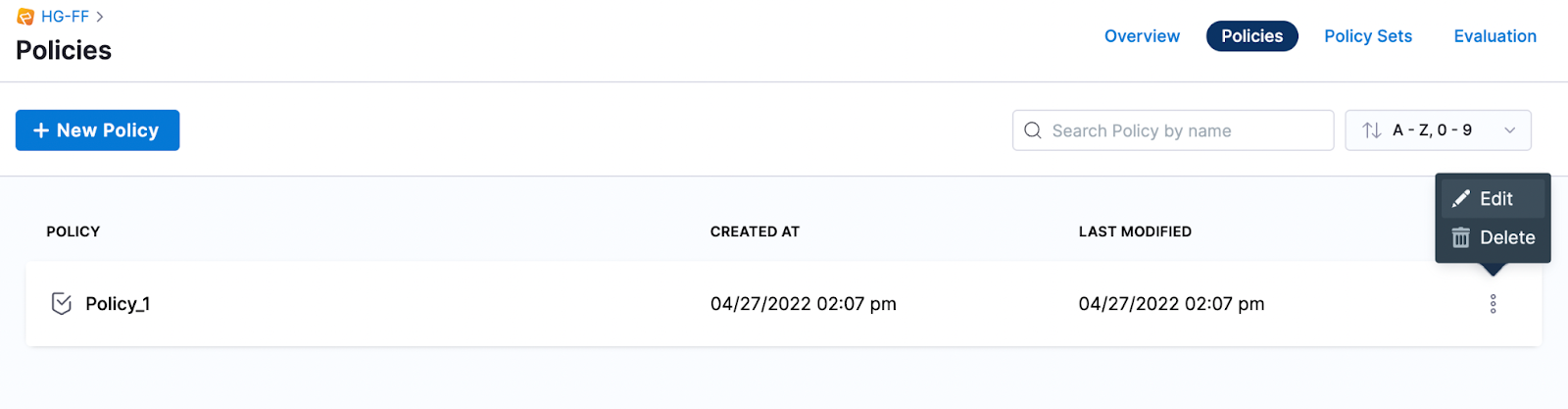 The first step of using policies with your Feature Flags is creating a policy.